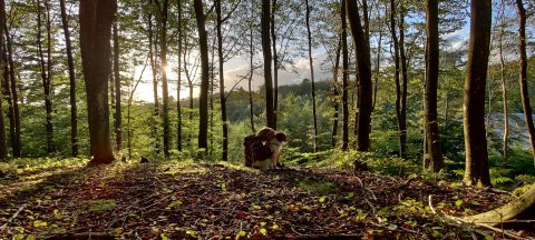Gaio på tur med Noam og jeg i skoven i september måned |  Gaio og Noam spejder horisonten | |