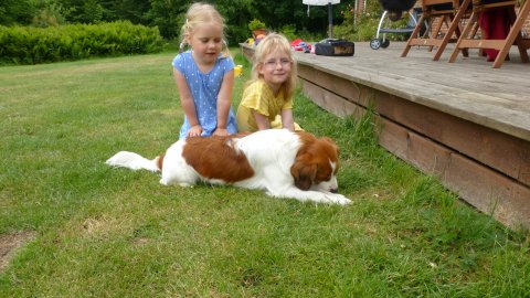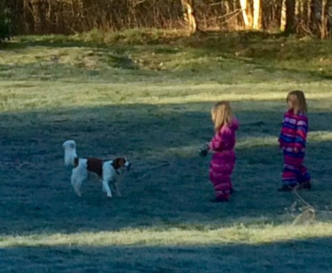 Gaio på tur med to søde piger.  Gaio har øje på en humlebi.